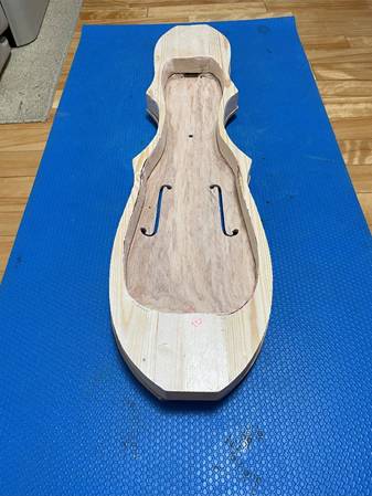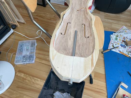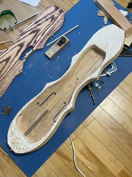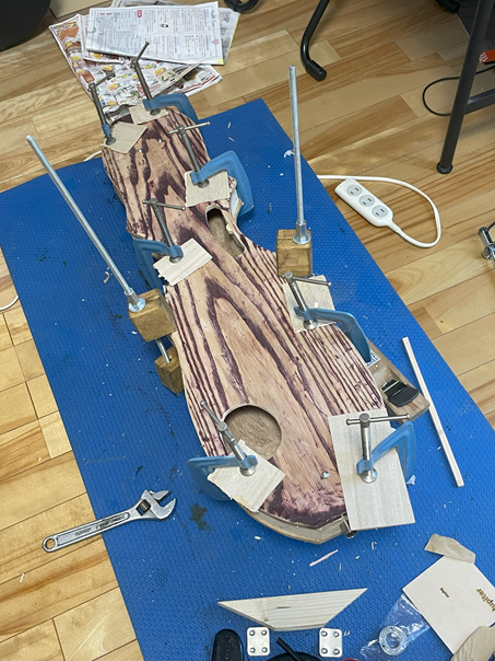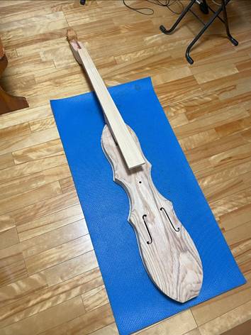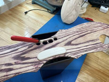 ボディと指板、天板の接着。