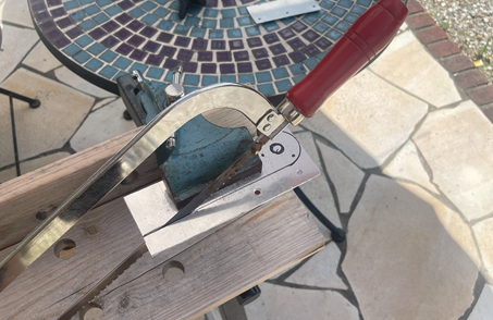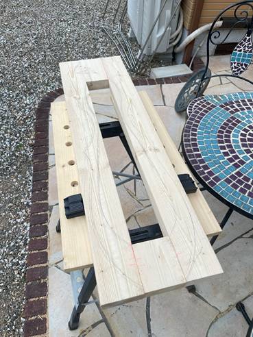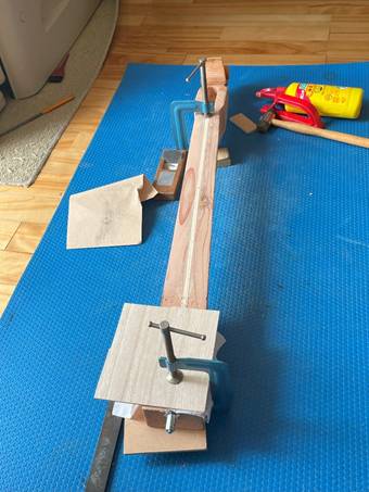 バイスが足りなかったので端部を椅子の脚で押さえてある・・・
