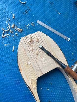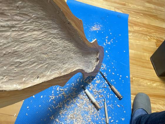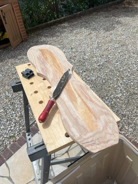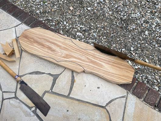 表面カンナ掛けで曲面作り。体力使う・・(2025.04.05