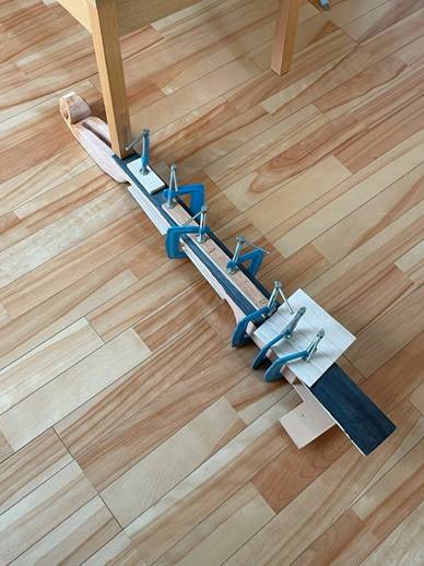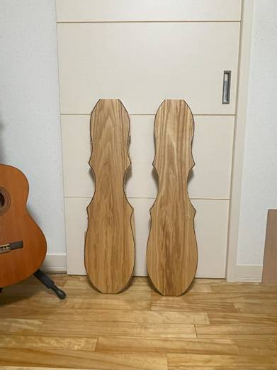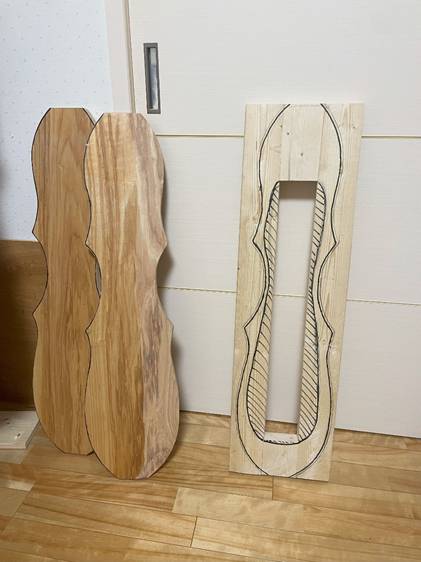 何とか底板もできたので、指板用の材料も一緒に並べてみた。