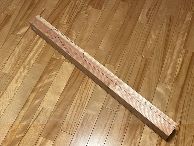 ネック素材は檜70mm角。(2025.05.11