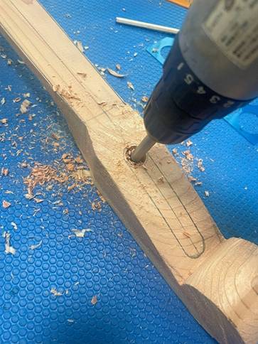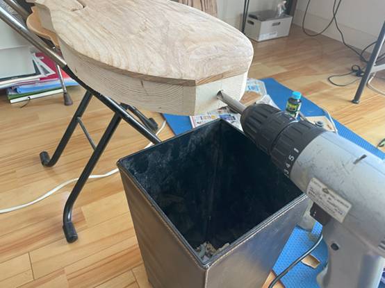 ヘッド部の中グリは電動ドリル使用。