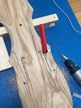 糸鋸で切り取った後、穴をいっぱい開けてみた。(2025.07.24