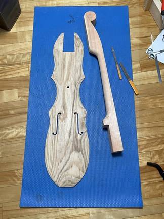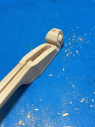 ヘッドの渦巻きは、彫刻刀でチマチマ削るしかない。
