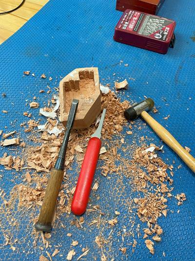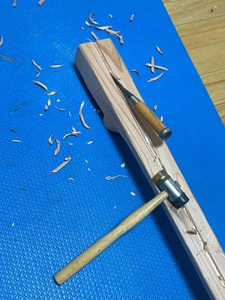 鋸引きの後はノミで削る。