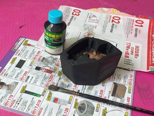 水性ステイン(黒)で染色したあとニスのスプレー。
