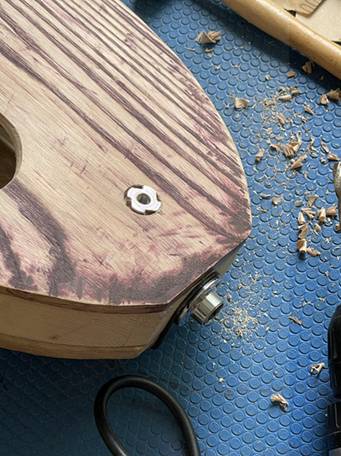 裏板にエンドピン固定用のナットを埋め込み。